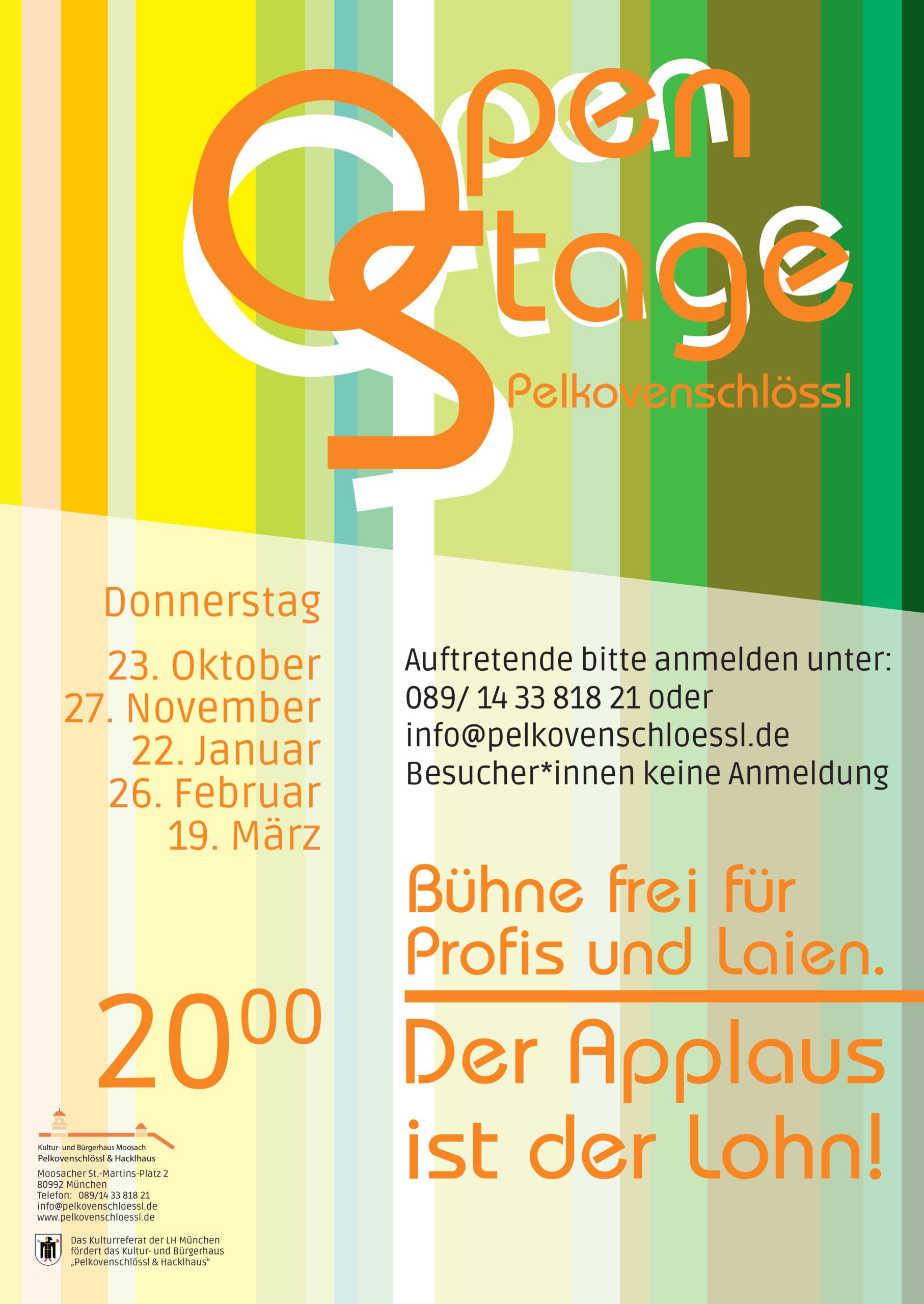 Die offene Bühne geht auch 2026 weiter und freut sich auf tolle Gigs! Künstler*innen – ob Profis oder Laien – geben ihr Bestes in jeweils 10- minütigen Auftritten. Ob Musik, Wortbeiträge, Magie, Tanz, Theater – ein Abend voller Überraschungen ist garantiert!